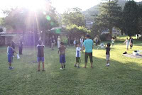 午後のアクティビティは恒例の寒沢の源流を訪ねてのハイキングですが,その終わりに,ウォータースライダーを体験しました。斜面にブルーシートを敷いてそこに水を流し,ボードに体を乗せてすべりおりるものです。最初は怖がっていた子どもたちも、大はしゃぎ!でした。